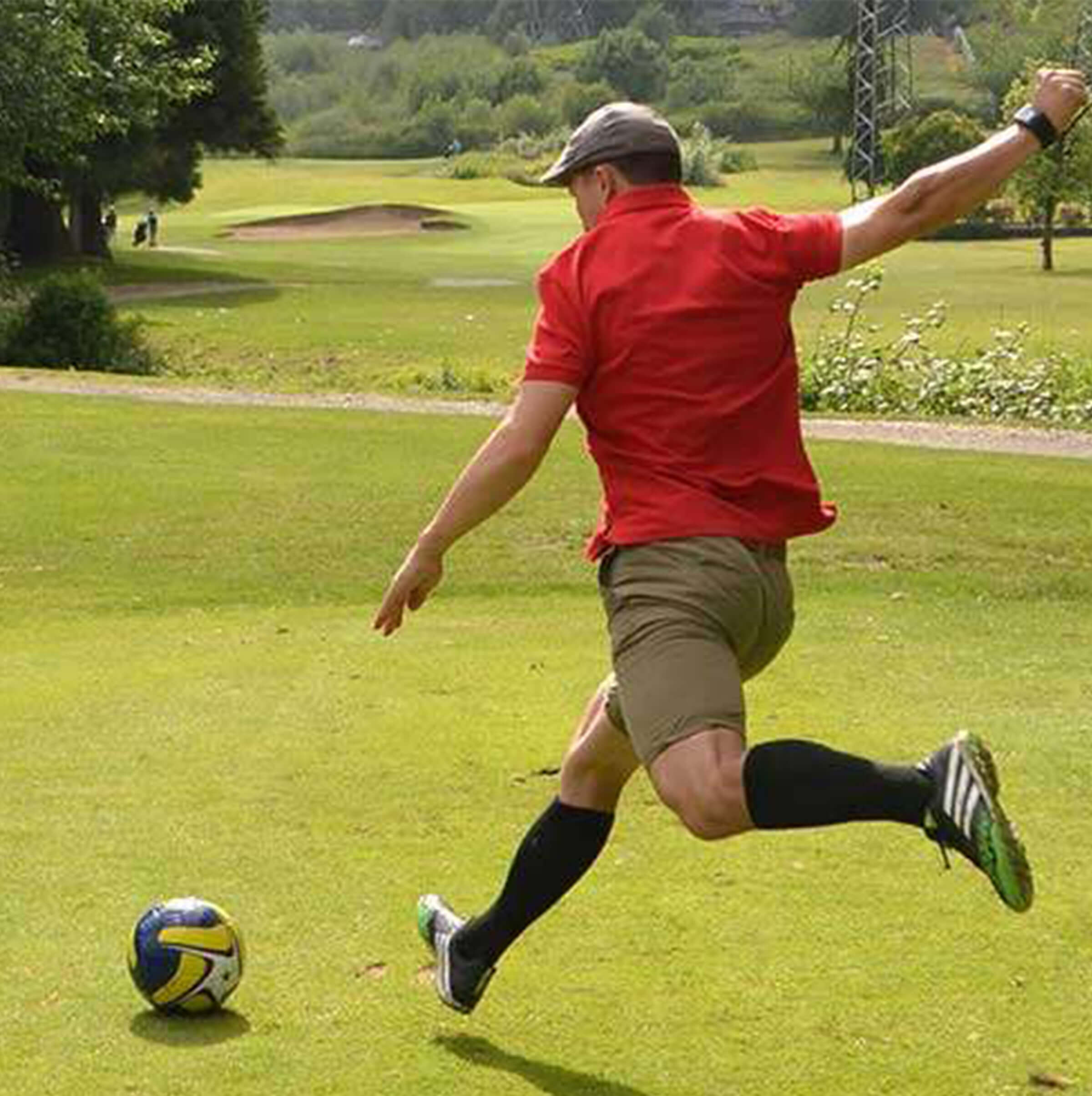 FootGolf is a combination of the sports of soccer and golf. The game is played with a regulation #5 soccer ball at a golf course facility on shortened holes with 21-inch diameter cups.