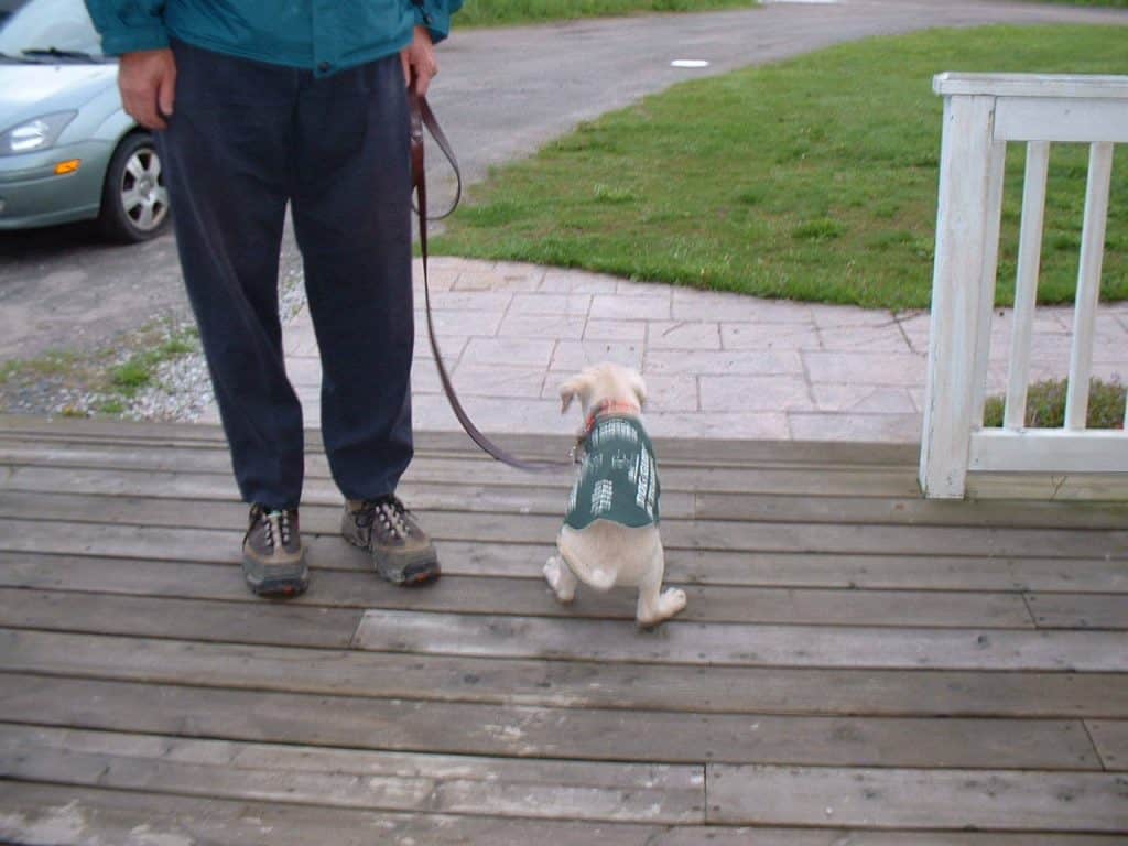 Angus was often called Anguish as he was a wee challenge to train – but we got there – and he is now special-skills assisting a gentleman in Toronto. He is a great companion and getting him walking again.